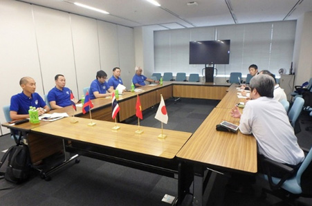 As part of a mission to Japan by the delegation from MRC, a member of NARBO, Japan Water Agency welcomed the MRC Secretary General and four other members to visit Takizawa Dam where they received the explanation of the outline of JWA's business, facility management, water management, dam disaster prevention operations, etc. Afterwards, the MRC Secretary General and others paid a courtesy call at JWA Headquarters, where opinions were exchanged and information given on the MRC's recent initiatives and the situation in the Mekong River basin.